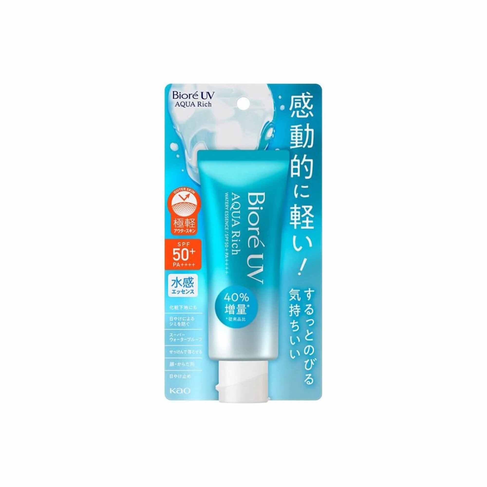 Biore UV Aqua Rich Watery Essence has a light-weight feeling yet it effectively protects from strong UV rays, preventing aging skin and sunburn