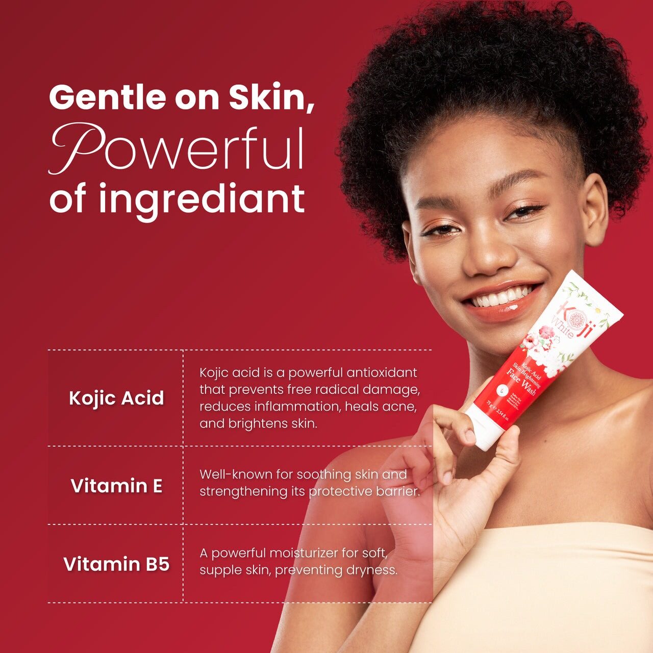 MEET OUR SUPER POWER BRIGHTENING ESSENTIAL: Kojic Acid Cleansing Face Wash contains Kojic Acid, an extract of 4-flower and vitamin C impurities on your skin and in your pores leaving skin feeling clean and smooth.This efficacious face wash leaves skin feeling instantly refreshed and soothed.